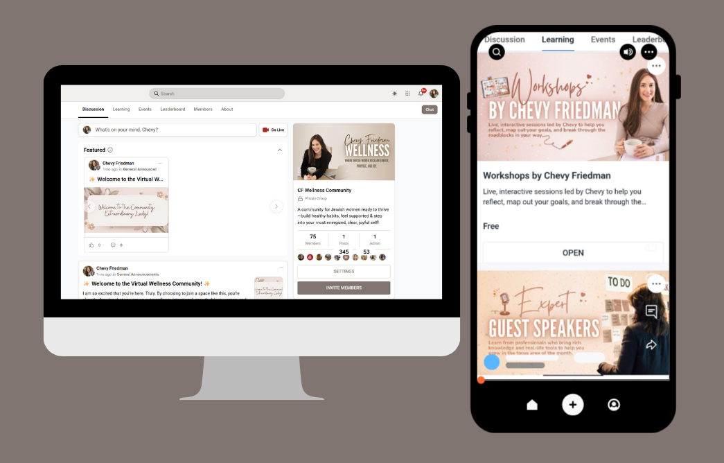 You can join from your phone or desktop. It’s all accessible through our community app and website platform.