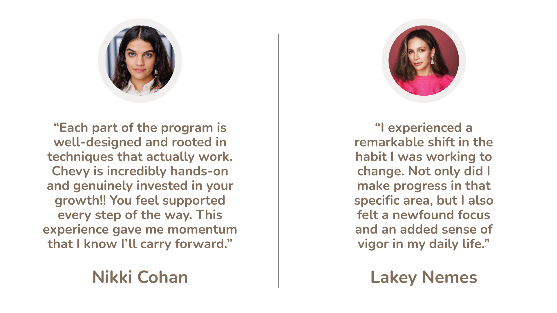 All sessions are live, and part of what makes the program so transformative is the consistency of showing up together. Of course, life happens — if you miss a session here or there, that’s okay. You’ll still have the structure and community support to keep you on track.