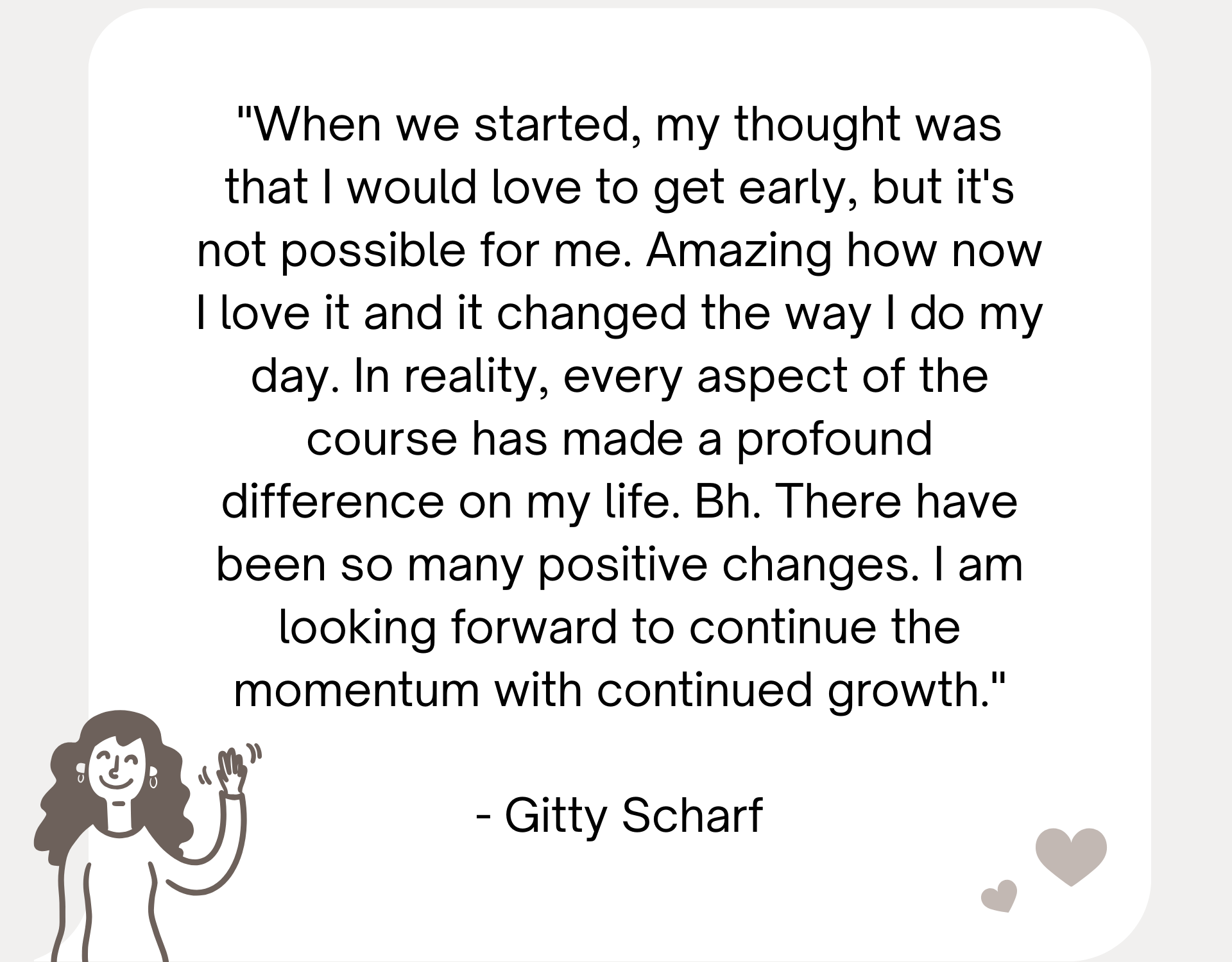 The only early morning accountability program for Jewish women ready to wake up to their full potential. This is your opportunity to stop dreaming and start transforming your mornings—and your life.